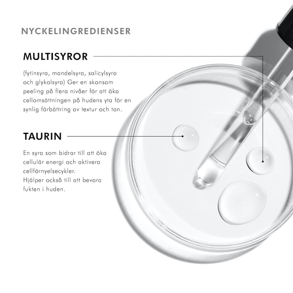 AQUA / WATER / EAU • GLYCERIN • GLYCOLIC ACID • ETHOXYDIGLYCOL • SODIUM HYDROXIDE • PHYTIC ACID • LACTIC ACID • MANDELIC ACID • TAURINE • SALICYLIC ACID • CHLORPHENESIN • CAPRYLYL GLYCOL • TETRASODIUM GLUTAMATE DIACETATE (F.I.L. N70034097/1).