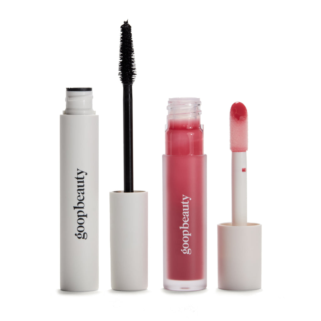 Elevate your look with this limited-edition duo curated for effortless elegance and clean, conscious performance. Featuring Goop’s cult-favorite Featherlash Lifting Serum Mascara and the ultra-hydrating Hydra-Barrier Gel Gloss in bestselling Blossom—a universally flattering sheer petal pink—this set is a celebration of clean beauty that delivers.